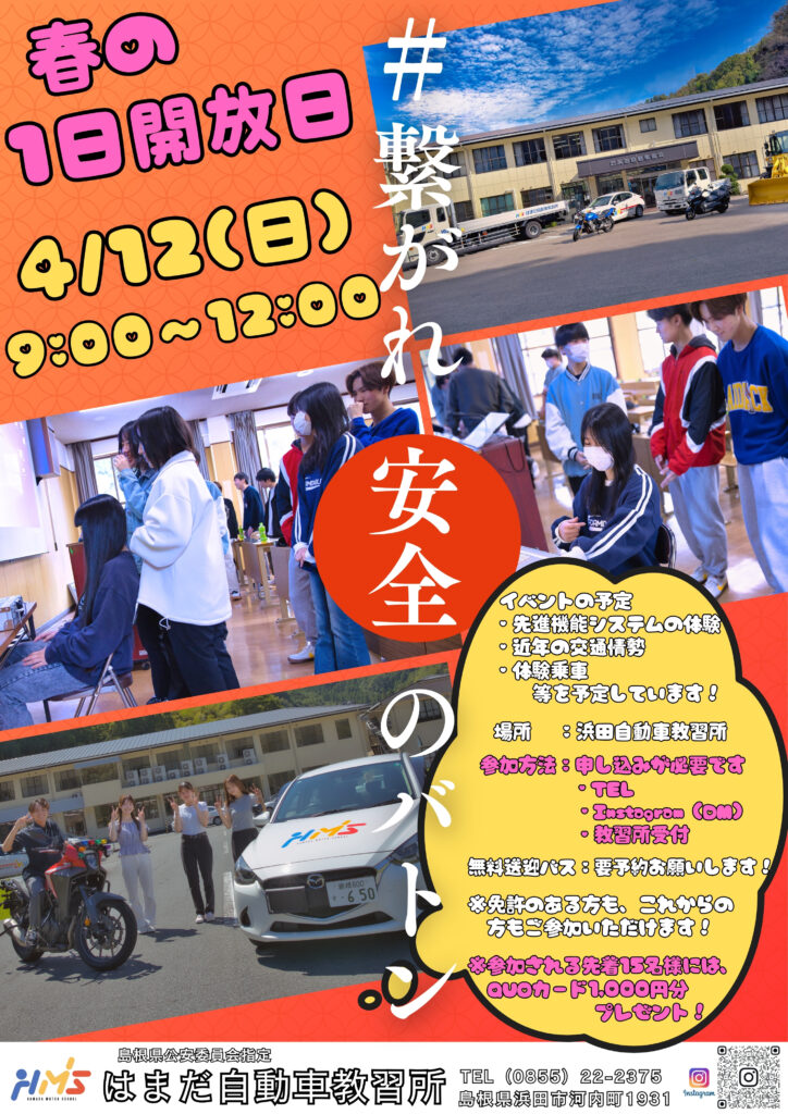 浜田自動車教習所にて開催いたします。